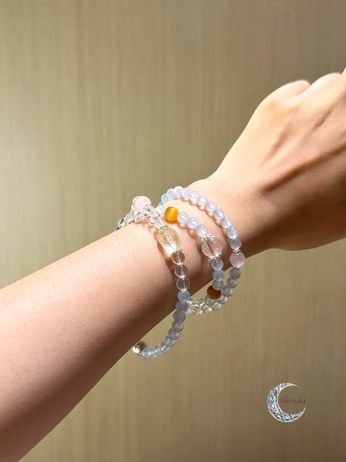 このブレスレットは、まるでやわらかな光の海のように優しさの中に確かな強さを見つけ、幻想の中でも現実を守るサポートとなります。