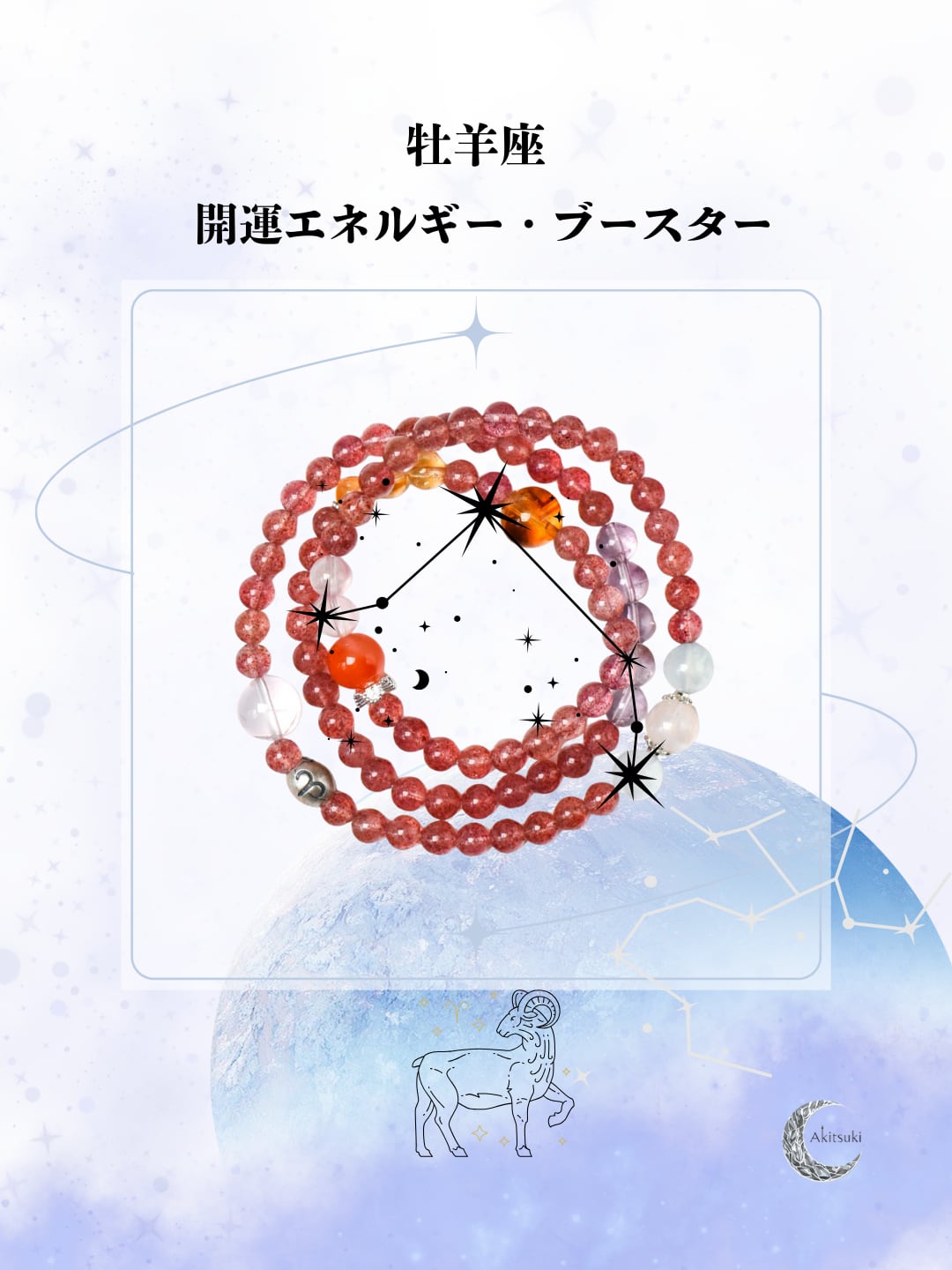 このブレスレットは、牡羊座の持つ「情熱」を守りながら心を落ち着かせ、運気を自然に高めてくれるサポートアイテムです。