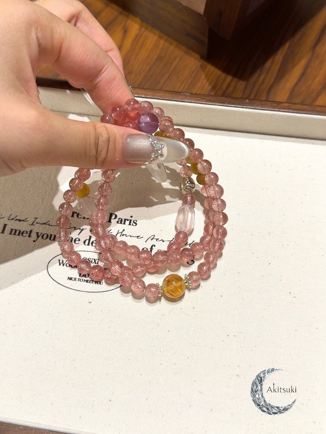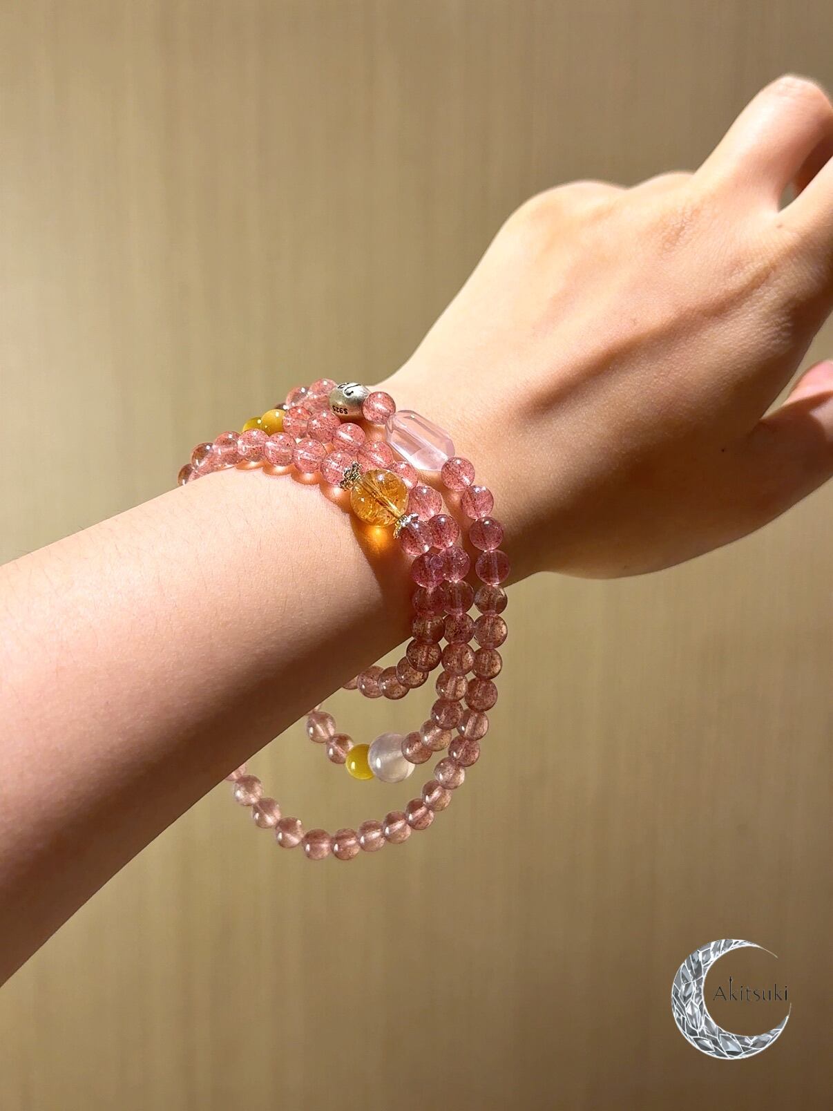 ストロベリークォーツを基調にピンククォーツで柔和な印象をプラス。