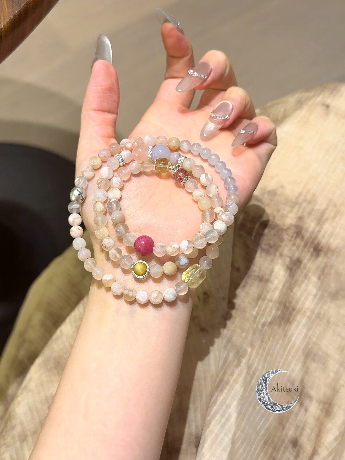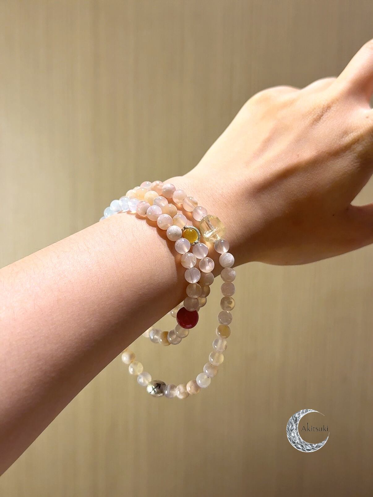 ストロベリークォーツのアクセントが少女のような幸運感を引き上げ、全体に温かく軽やかな印象を与えます。