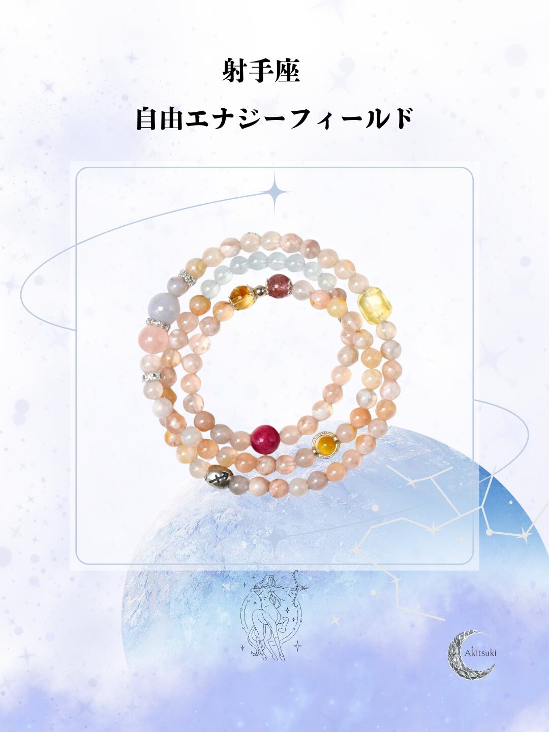 射手座専用「自由エナジーフィールド」のブレスレット。どこへ行っても熱意と幸運を満たし、自分の星と海を勇敢に追いかけられます✨。
