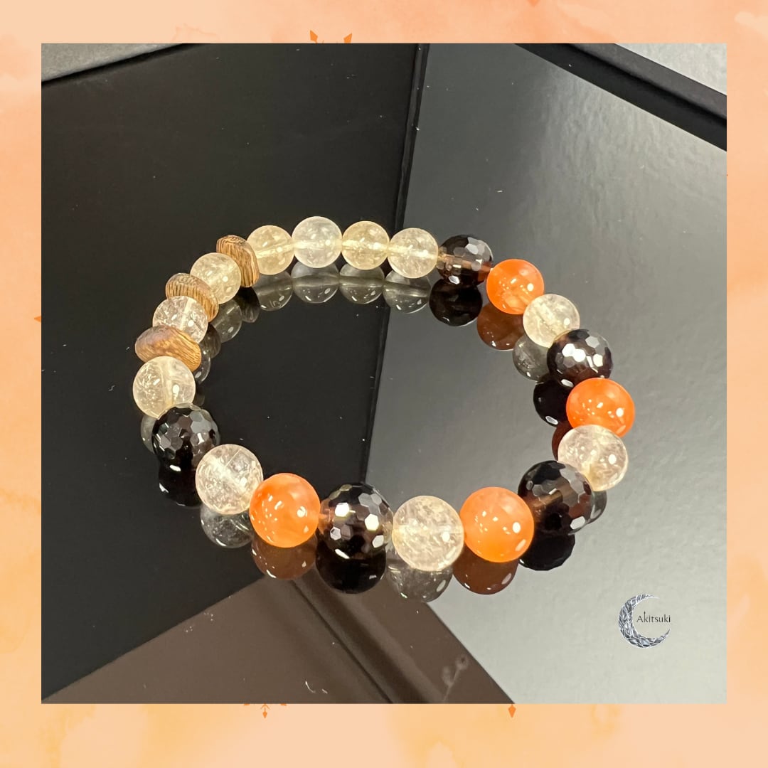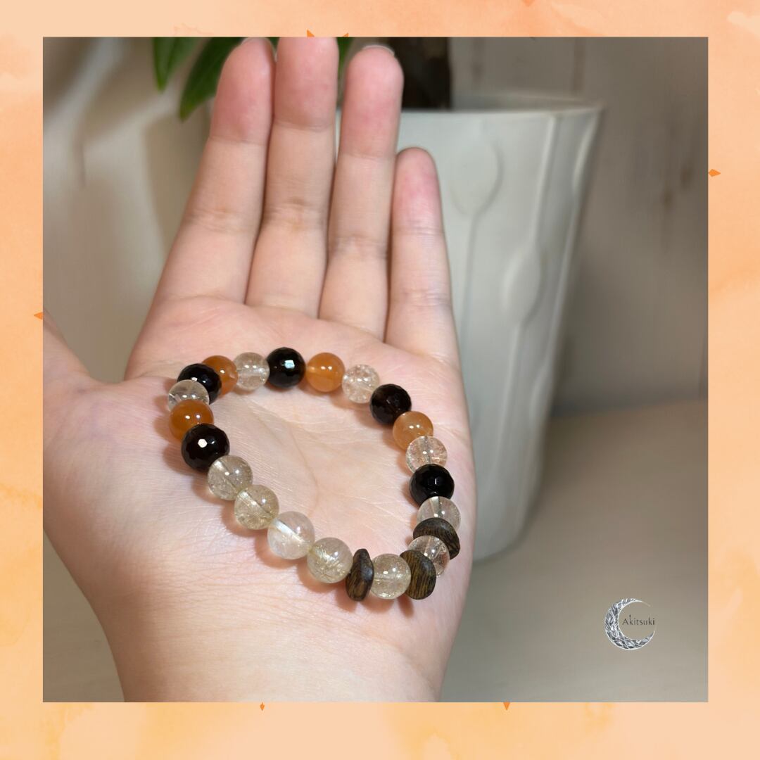 W-018 | Akitsuki | 成功と財運を呼び込む守護石ブレスレット (ルチルクォーツ・沈香)