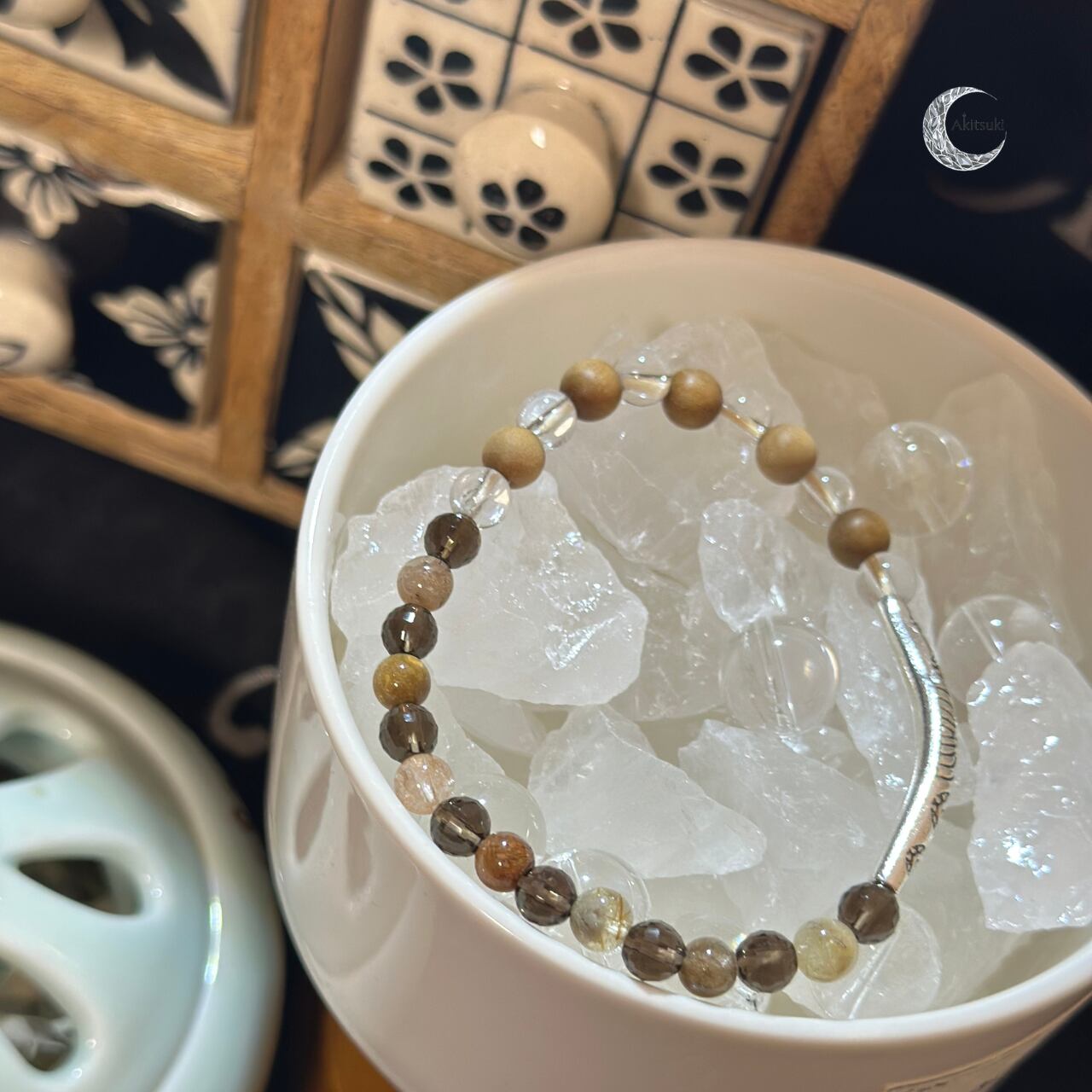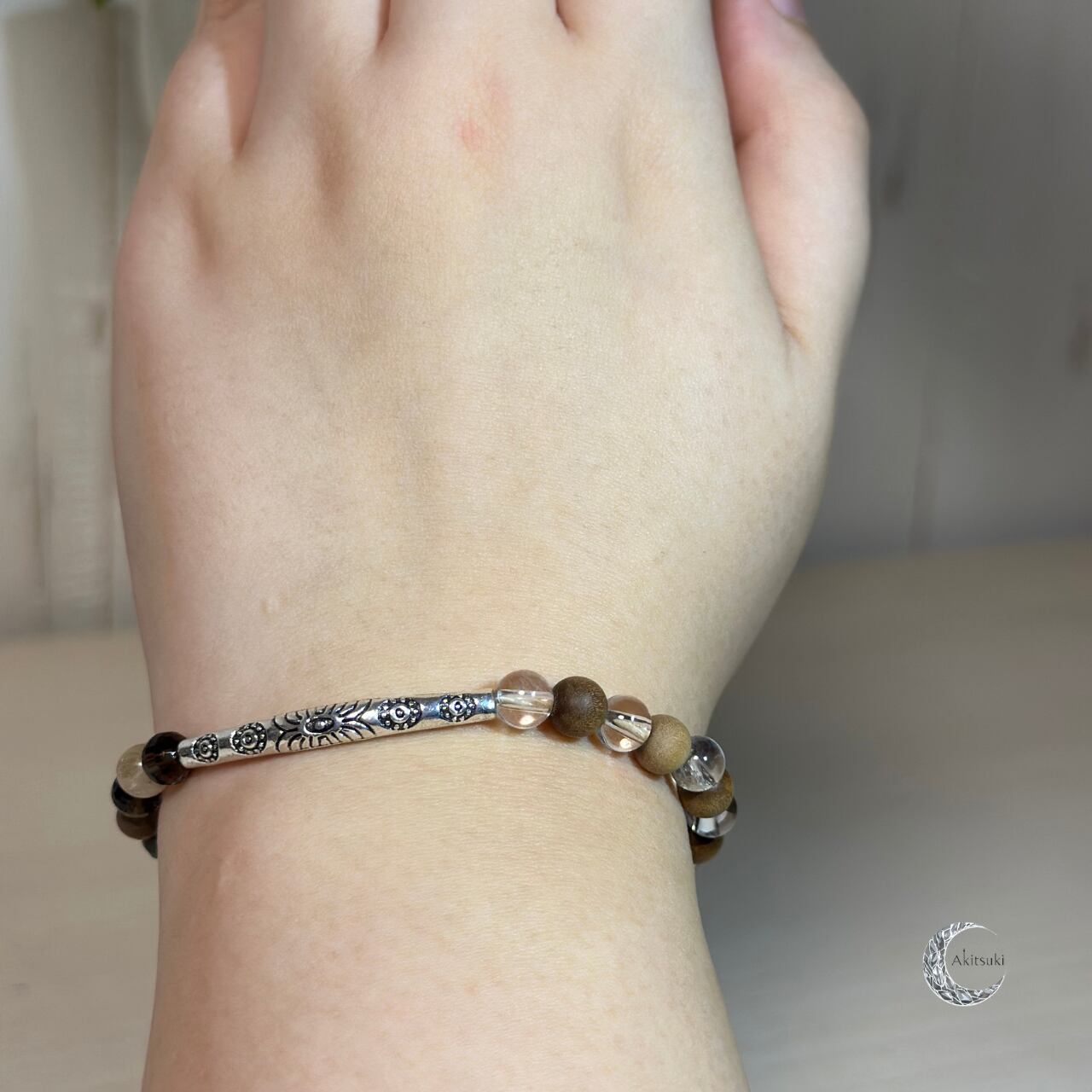 W-015 | Akitsuki | 心に光を灯す浄化の守護石ブレスレット (白水晶・上品・華奢)