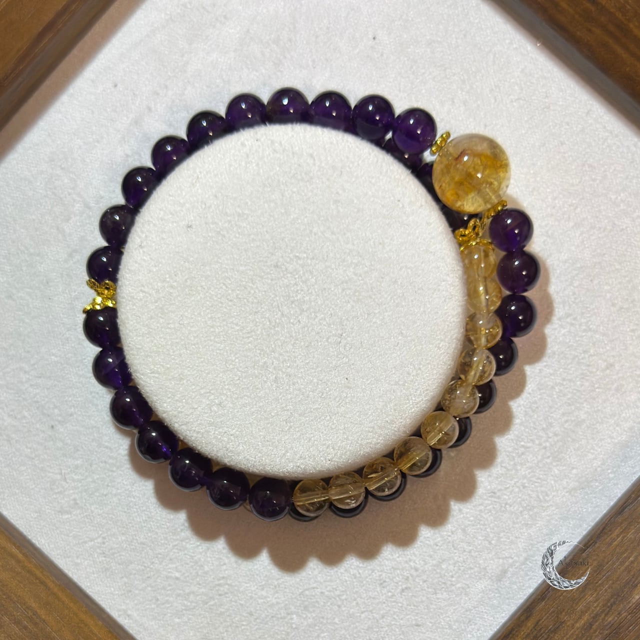 W-102 | Akitsuki | 心を整え、幸福を呼ぶ守護石ブレスレット (アメジスト・シトリン)