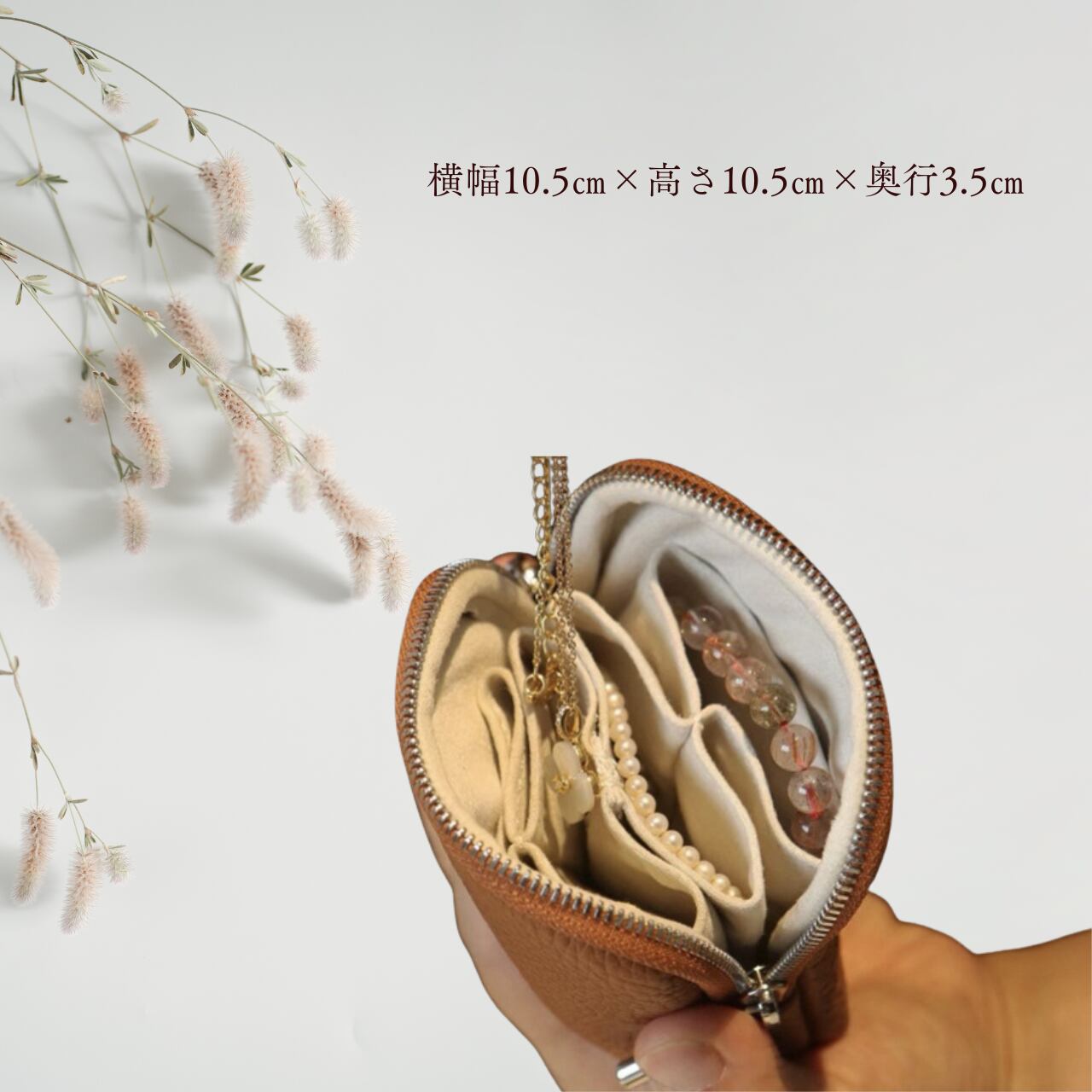 本革 ジュエリーポーチ【牛革】アクセサリーケース 携帯用 Akitsuki【アキツキ】持ち運び トラベルポーチ 指輪 ネックレス ピアス 収納 ギフト