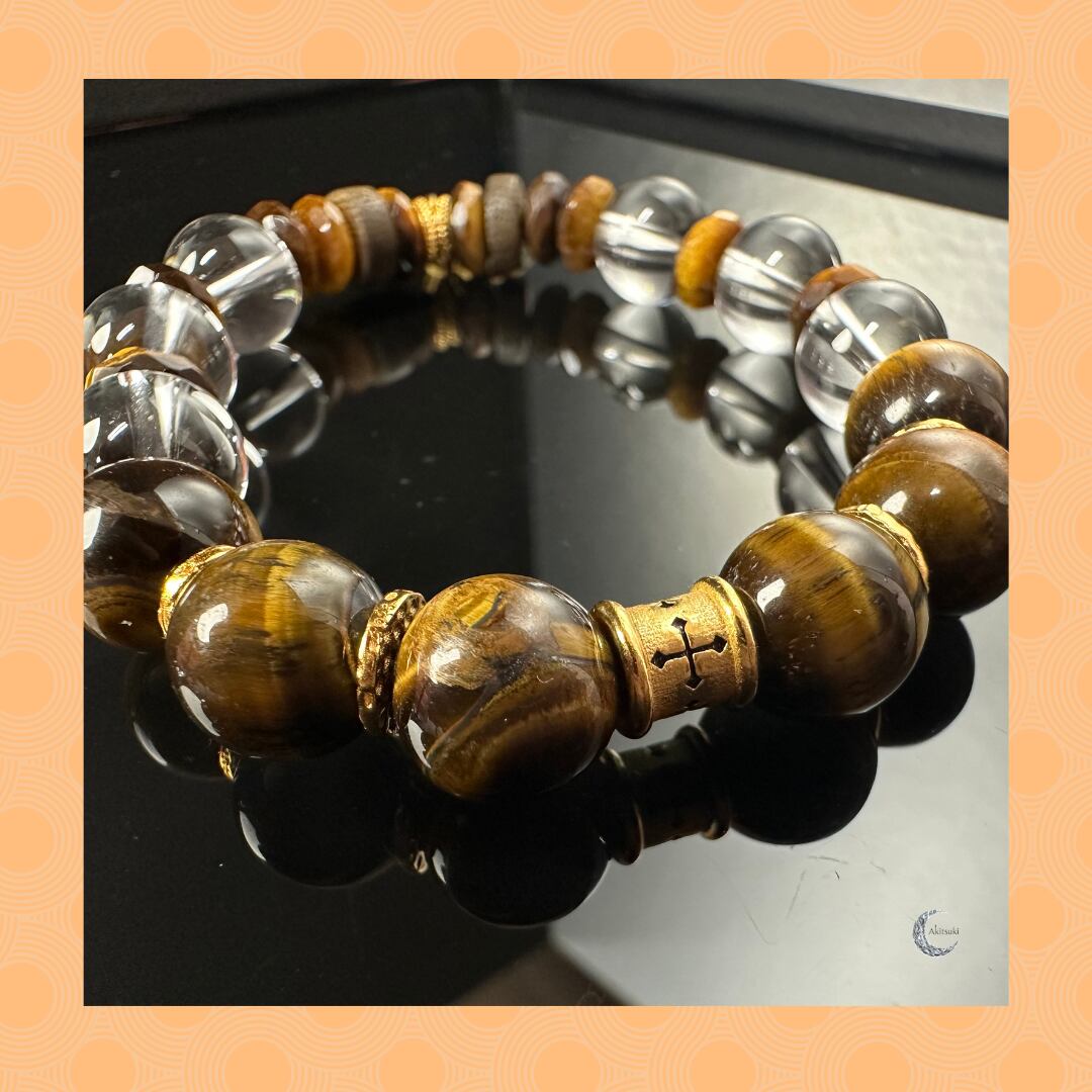 W-020 | Akitsuki | 自分軸を整える守護石ブレスレット (タイガーアイ・沈香)