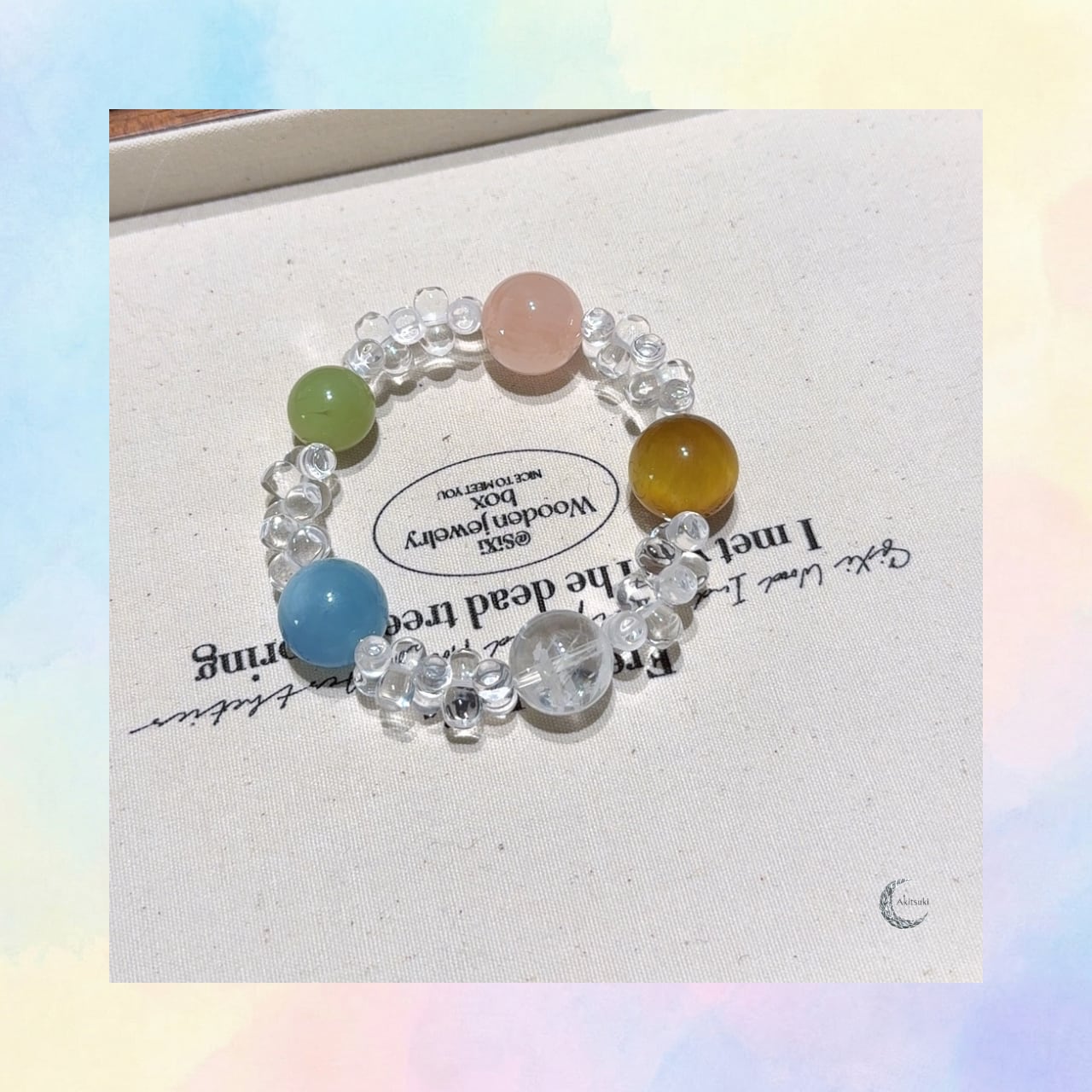 W-025 | Akitsuki | Gogyō 五行開運守護石ブレスレット|五行バランス・運気調和(白水晶・アクアマリン他)