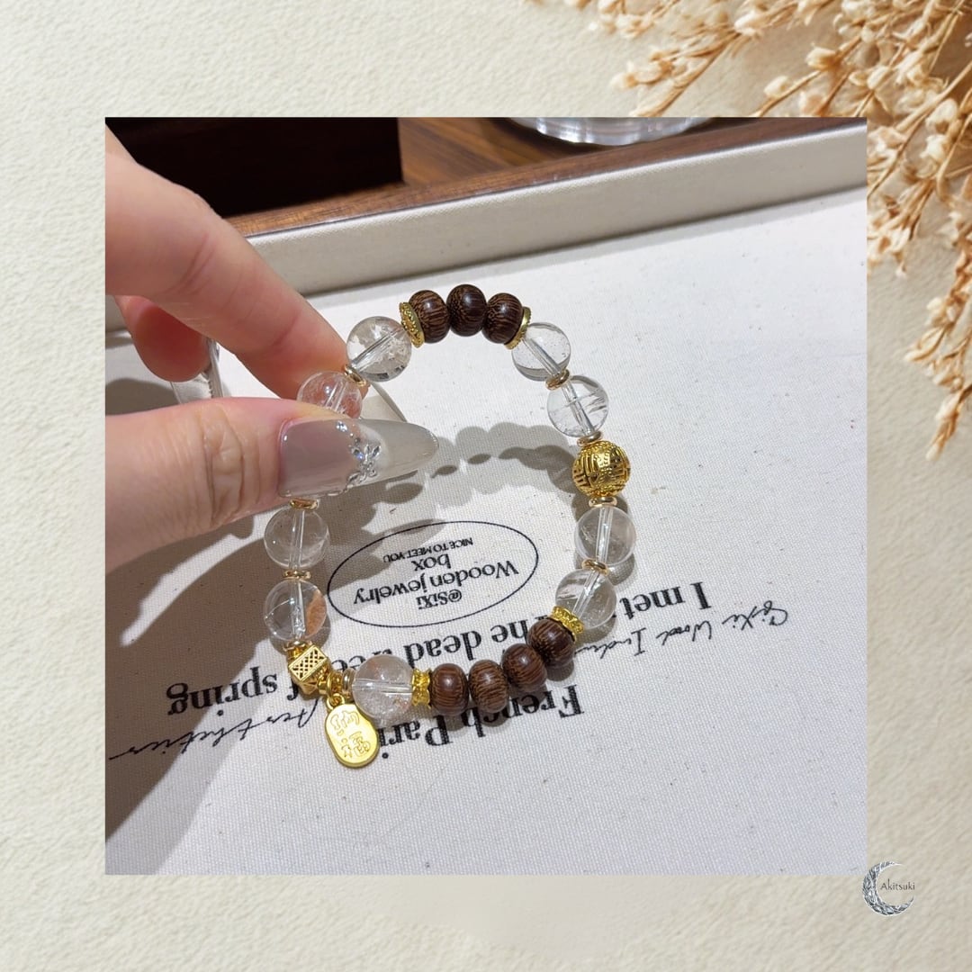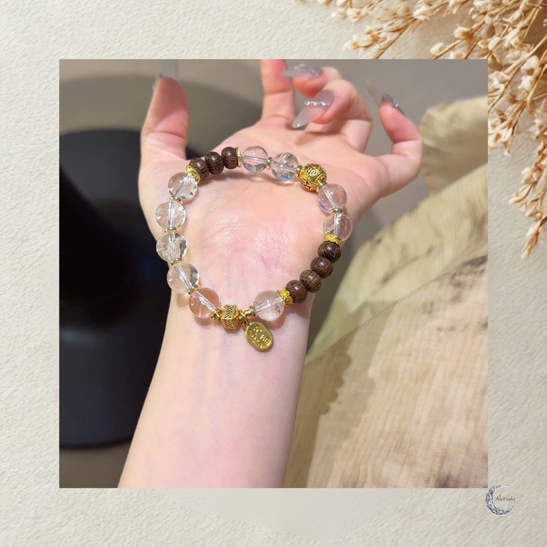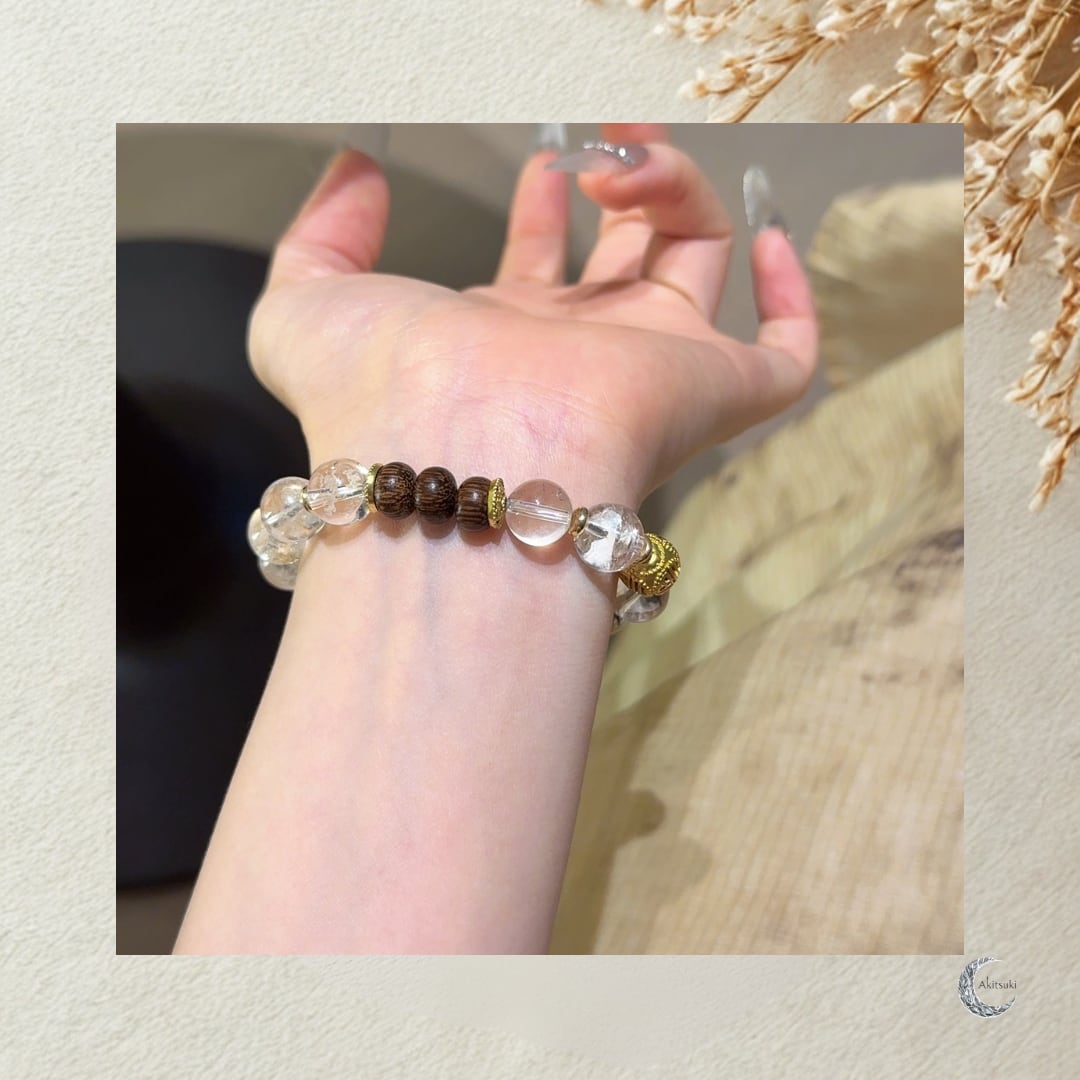 W-028|Akitsuki| 静寂と浄化をもたらす禅の守護ブレスレット(白水晶・沈香)