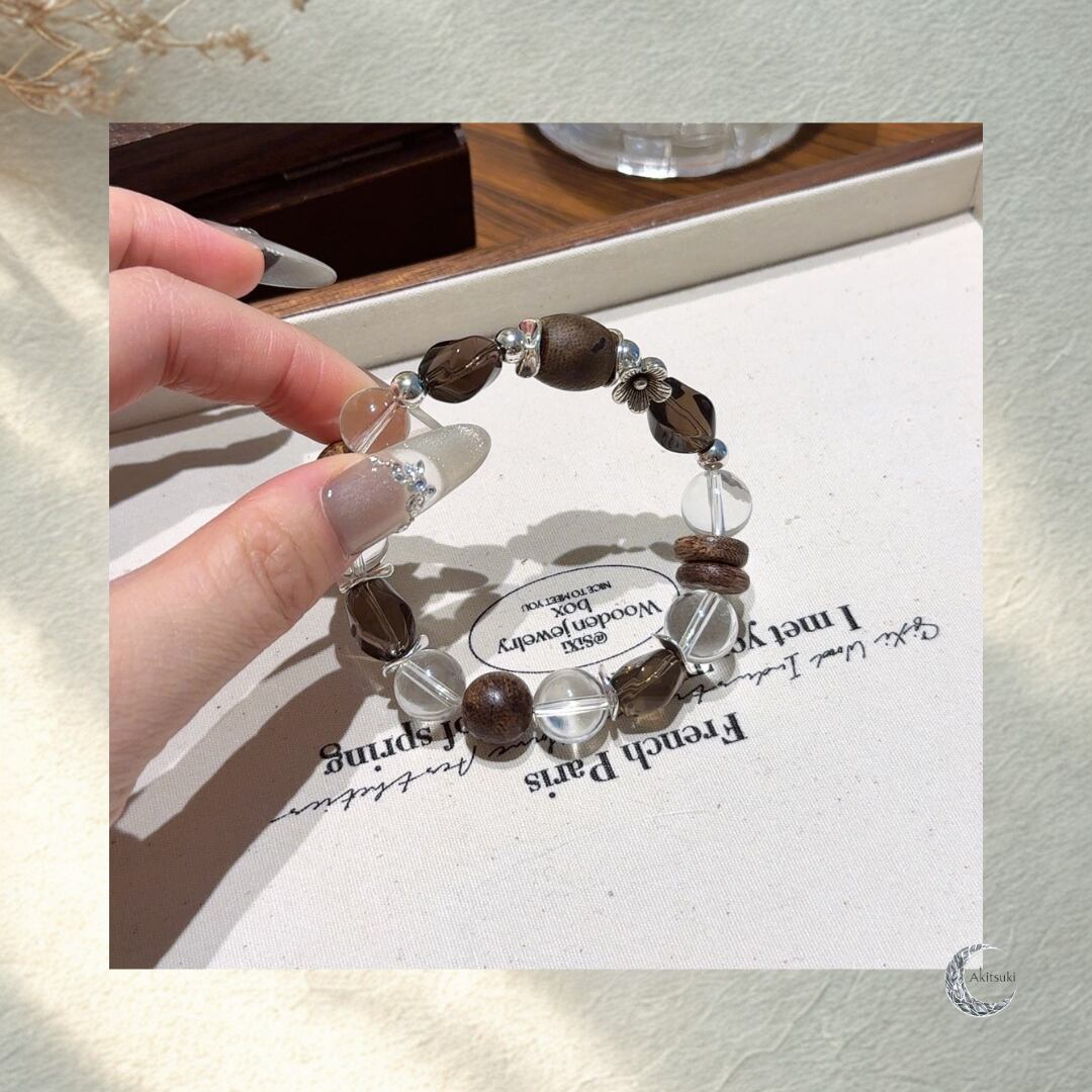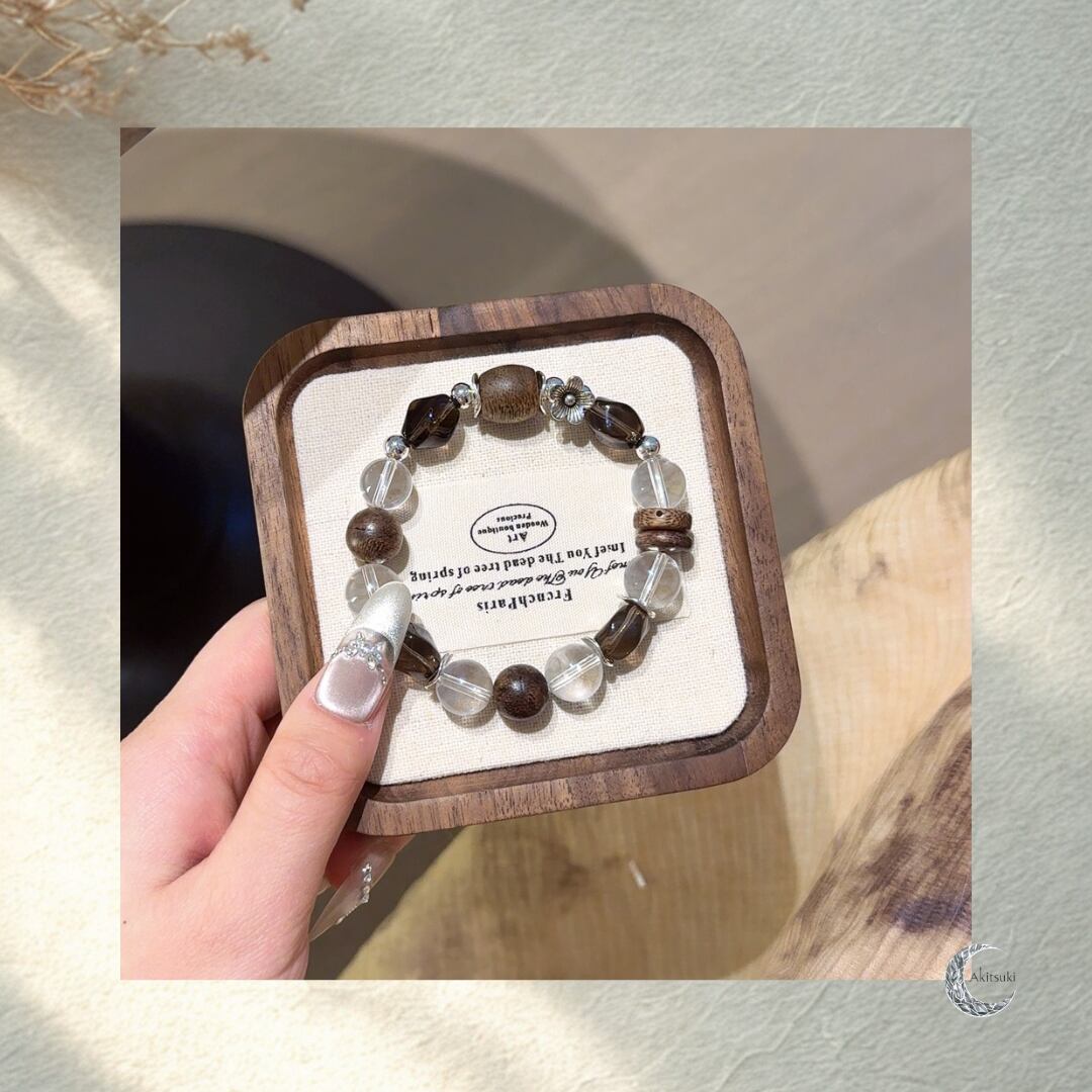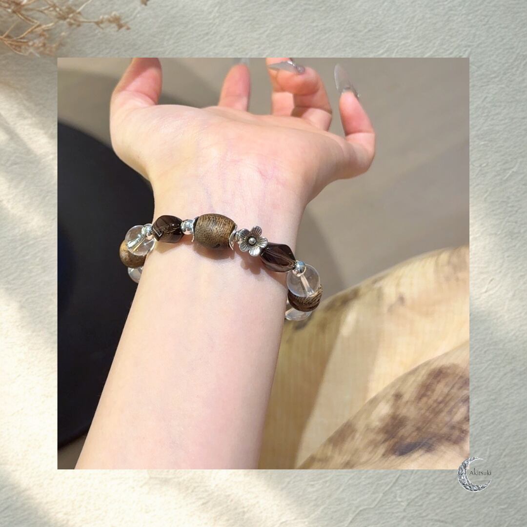 W-029 | Akitsuki| 深い呼吸と穏やかさをもたらす守護ブレスレット(白水晶・沈香)